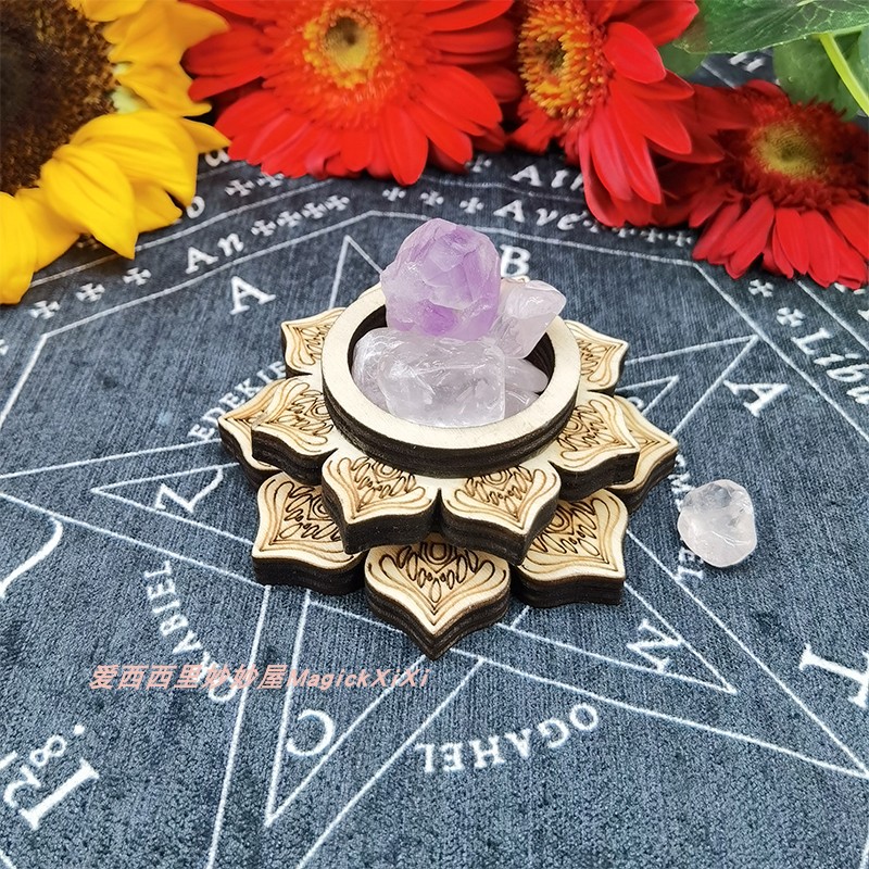 Wood Lotus Water Crystal Ball Base Eu Type Geometric Pattern Crystal Mesh Cup Wax Candleholder Solid Home Swing-Taobao