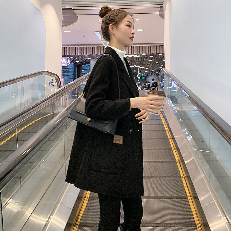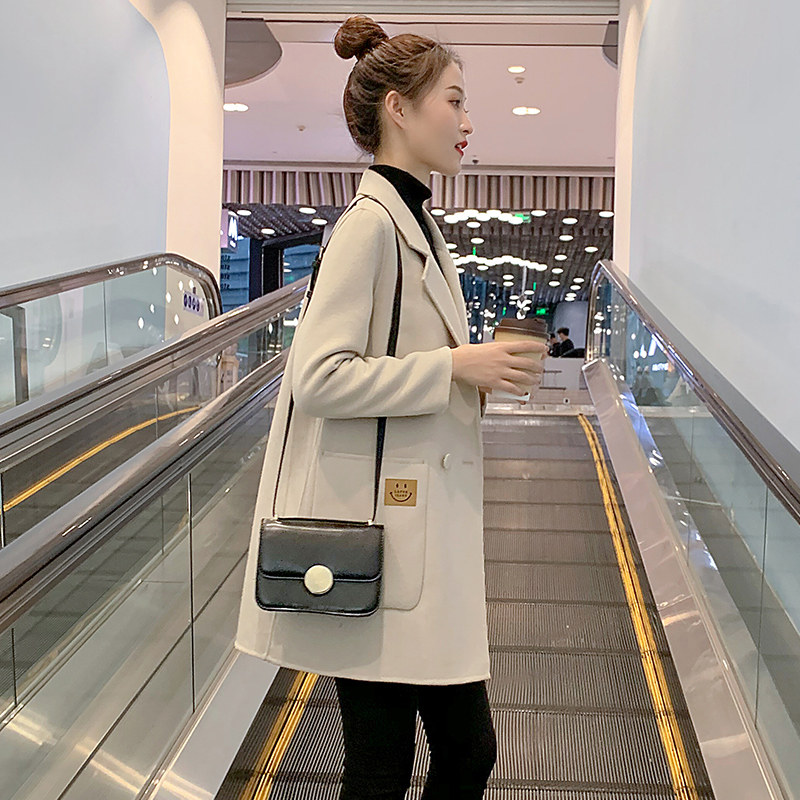 2021 Winter new bifacial cashmere big coat woman with medium long version high-end suit small loose fur coat
