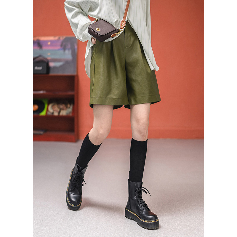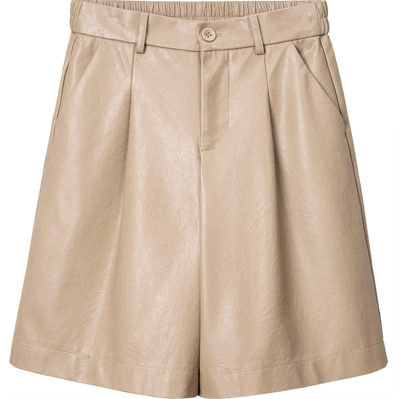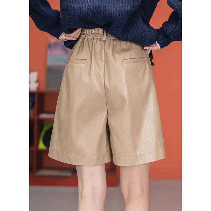 High waist pu leather 50% pants woman fall outside wearing casual wide-leg shorts Jane approachless 100 hitch slim straight cylinder 50% pants