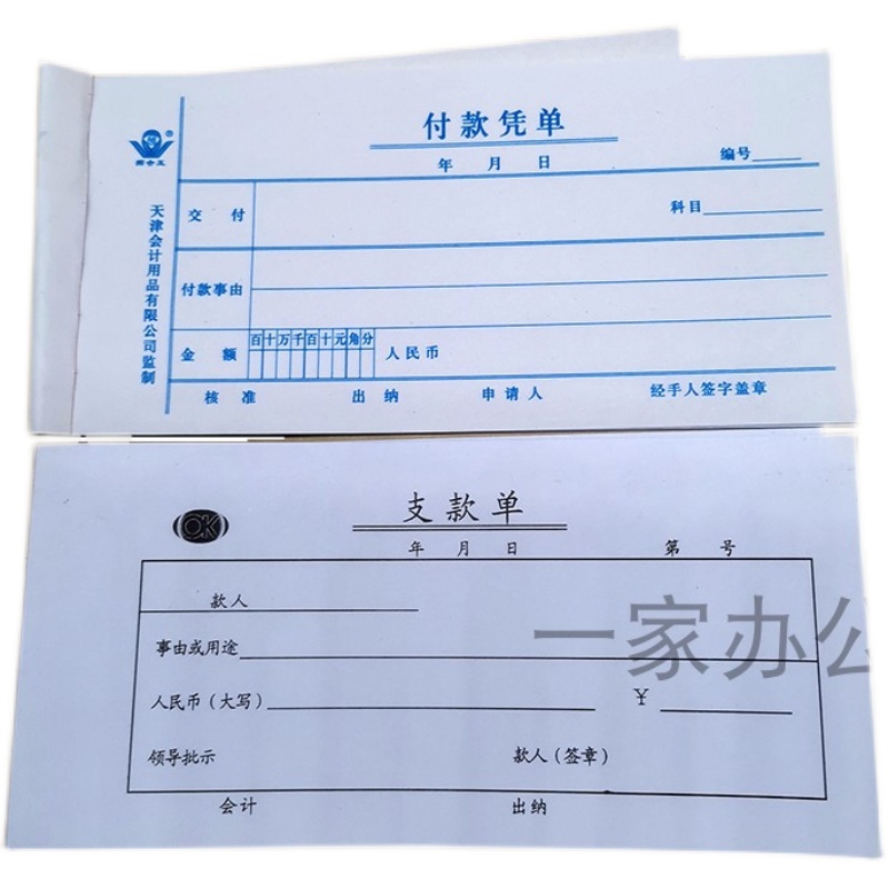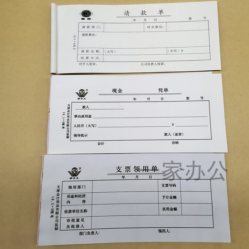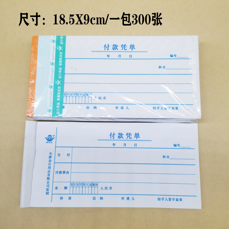 Please single package 300 sheets of cash voucher One pack of 300 sheets of single package 300 sheets of cheque collar with single package 300 sheets of payment voucher A pack of 300 reimbursement voucher A pack of 300 tickets