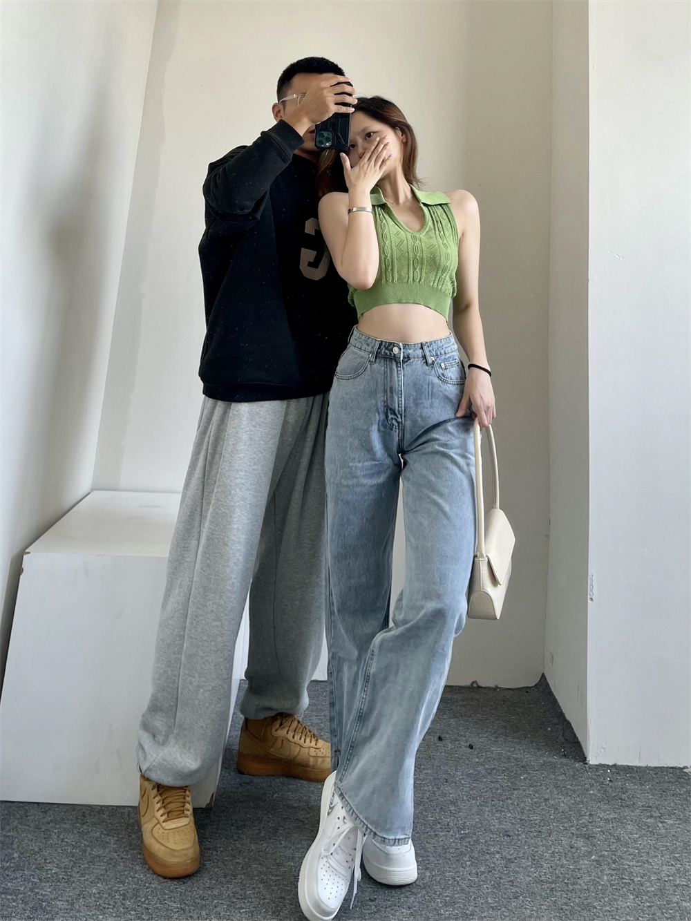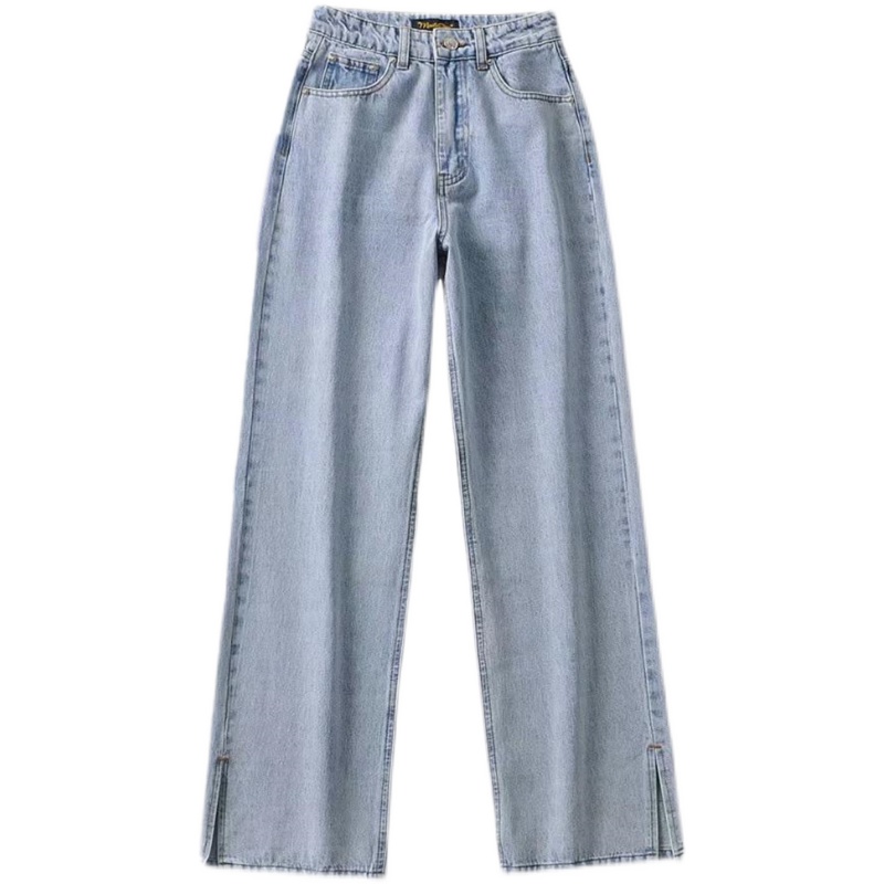 2022 early spring good showing legs long heart machine base denim towering trousers female display high display slim and high waist straight drum