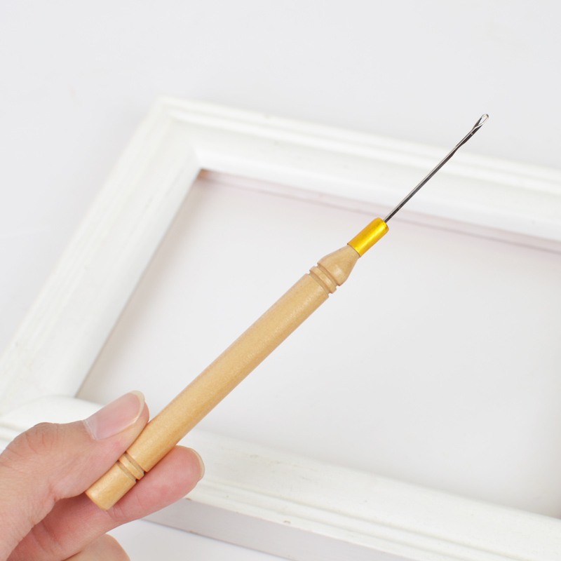 Pick up special wood handle crochet hook needle with tongue Genuine Hair Woman picking up Hook Needle Feather picking up Crochet Needle Tool Wholesale