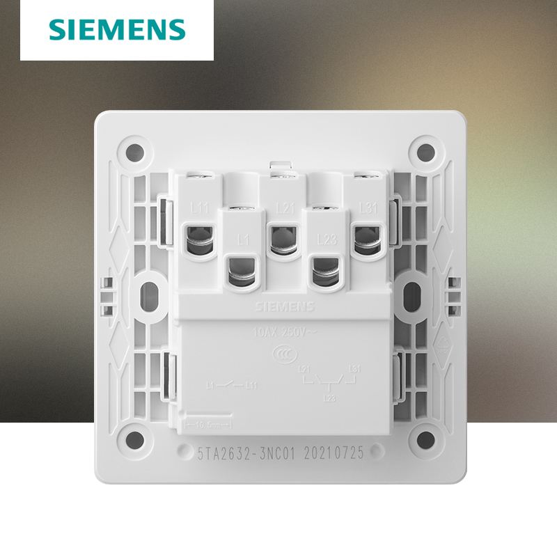 Siemens Switch Socket BLACK COLOR ELEGANT WHITE HOME 86 TYPE CONCEALED WITHOUT FRAME LARGE PANEL THREE OPEN SINGLE CONTROL SWITCH