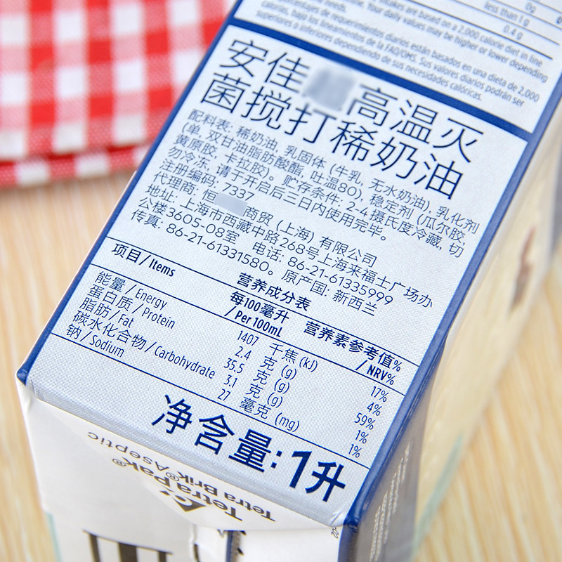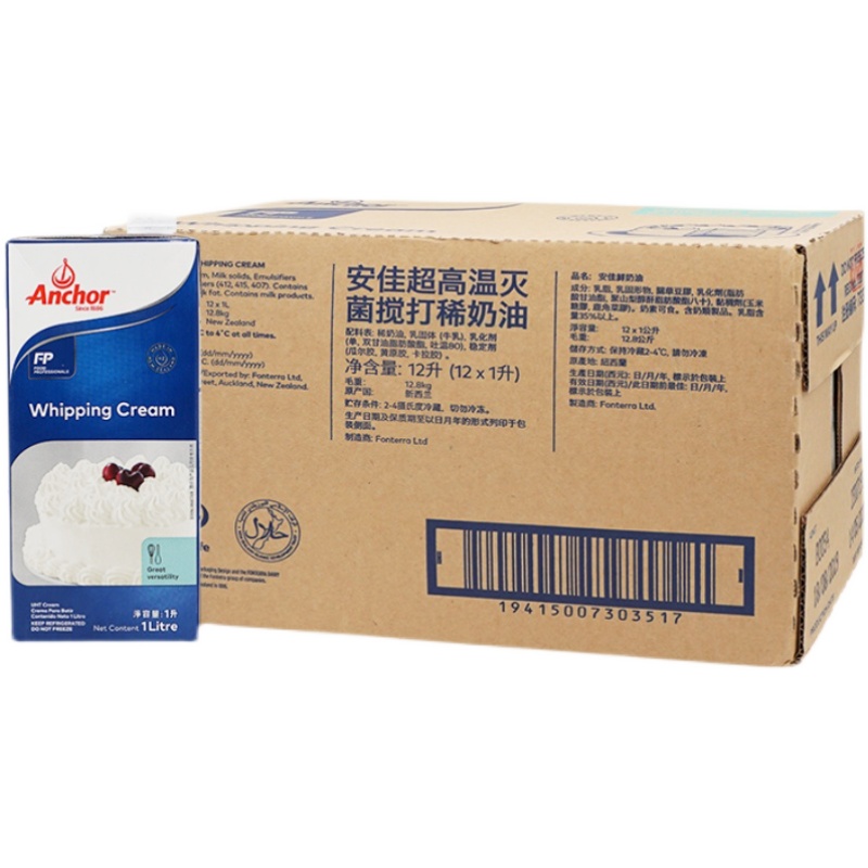 Angjia Light Milk Oil 1L* 12 New Zealand Import Animal Lean Cream Cake Framed Ice Cream Baking Raw Material