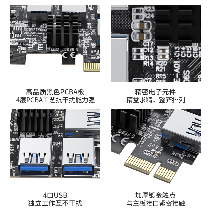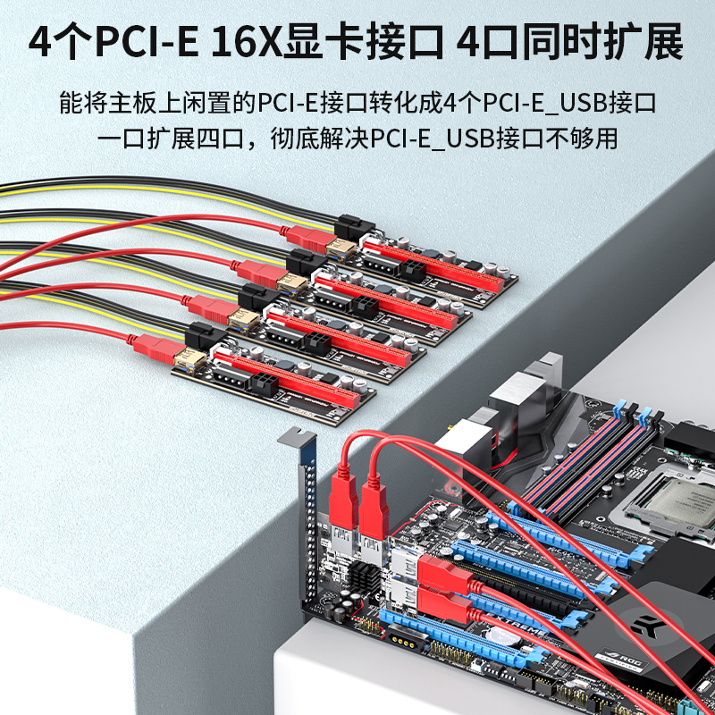 PCIE one drag four-mouth USB PCIE one drag four-port USB 4 x1 turn x16 graphics card extension cord