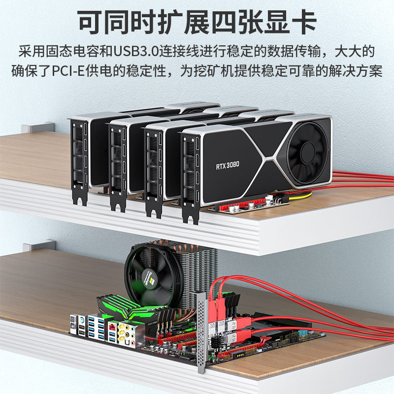 Acassis 1 turn 4 mouths PCIE augmented card PCI-Ex1 turn x16 graphics card extended line one drag four 1x turn 16x graphics card slot USB3 0 expansion of extension cord