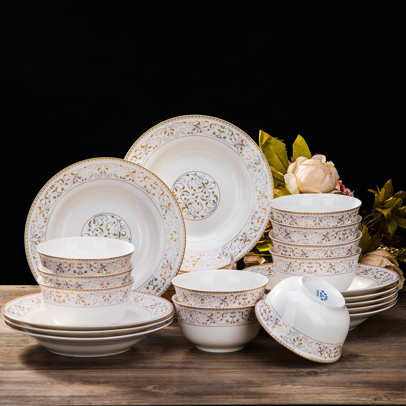 Dishes Dish Suit Home Bone China Tableware Jingdezhen Eurostyle Brief Phnom Penh Bowl Tray High Temperature Resistant Mix Matching New-Taobao