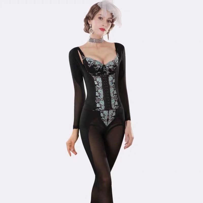 Black long-sleeved black trousers in long-sleeved pants in skin color long-sleeved pants
