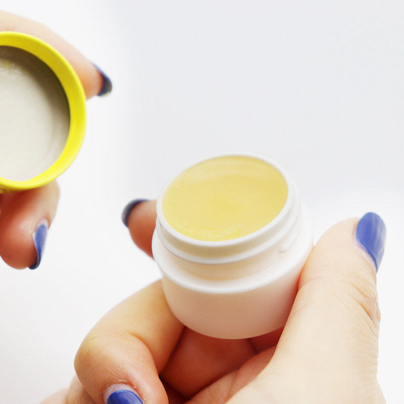 Pay attention to the date, lip balm, small yellow jar, lip care, lip mask, exfoliation, lightening of lip lines, lipstick, primer before makeup
