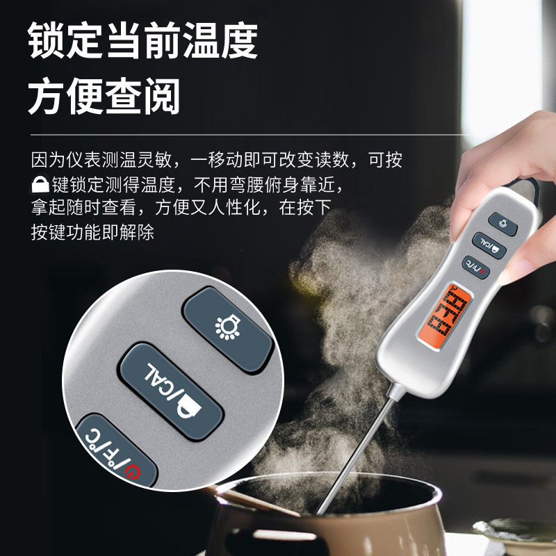 Triple Print Food Thermometer Kitchen Baking Steak Grilled Meats Thermometry Water Temperature Oil Temperature Probe Type High Precision Thermometer