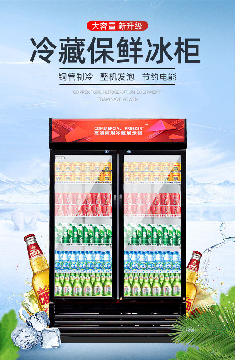 Beverage display cabinet commercial single door double door refrigerated straight cold fresh air cold frost convenience store beer vertical display cabinet