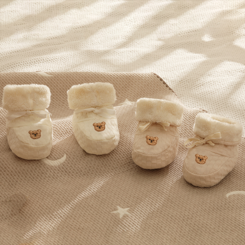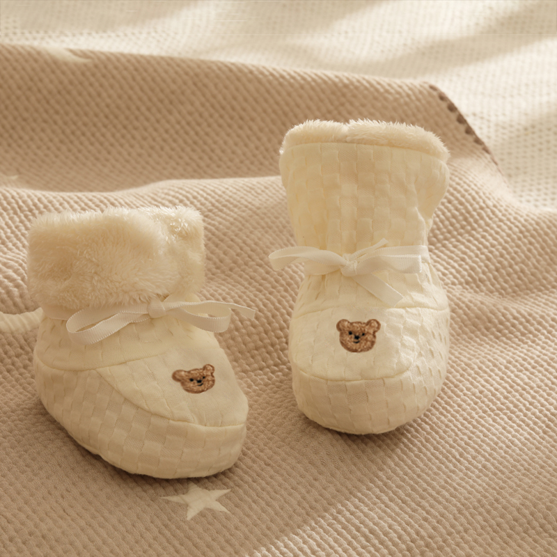 Baby shoes Autumn and winter newborn thick warm 0-6 months soft sole male and female baby cotton shoes plus fleece front shoes