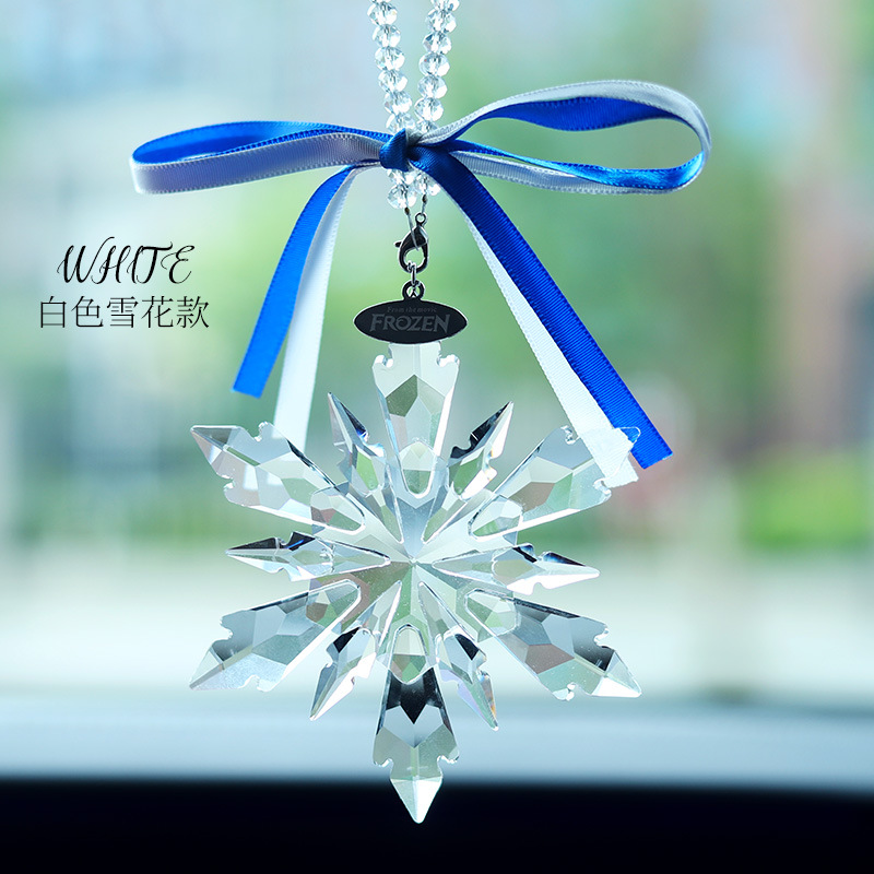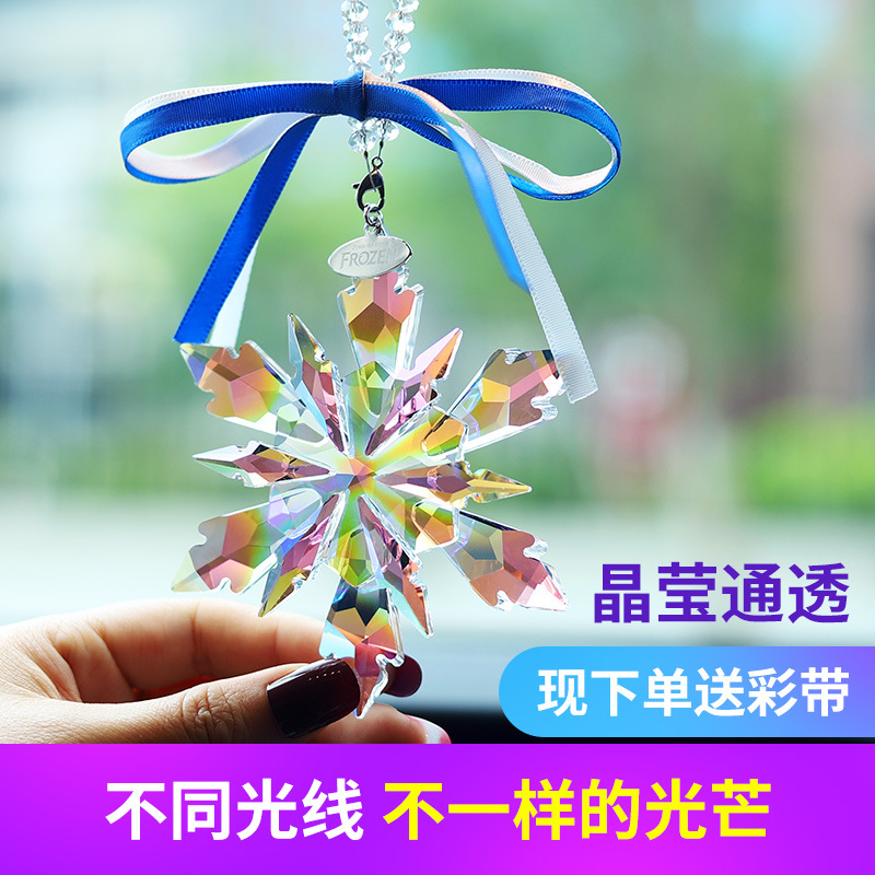 Frozen Car Pendant Snowflake Crystal Rearview Mirror Car Ornament Ladies Net Red Car Interior Decoration Pendant