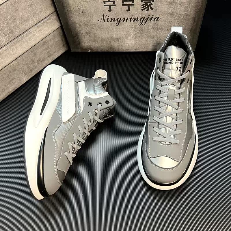High Cylinder Shoes Men's Wave Shoes Plus Suede Cotton Shoes Casual Board Shoes 2021 New Winter 100 Hitch Real Leather Old Daddy Shoes Man