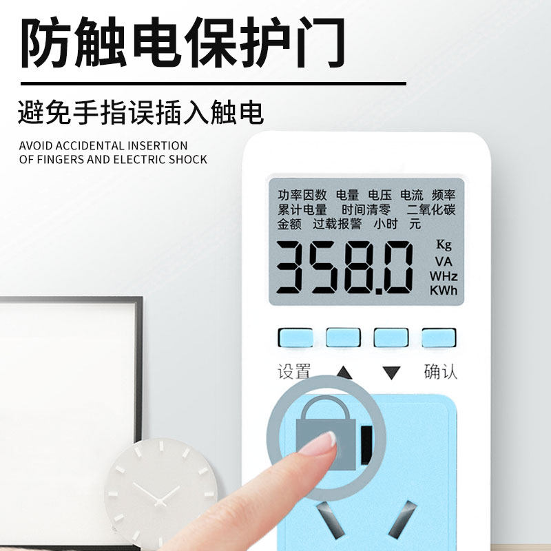 Power monitor 10A-T10 electronic timing 10A new national standard 5-hole socket power monitor 10A with backlight and code lock phase detector firing line earth wire leakage detection power monitor