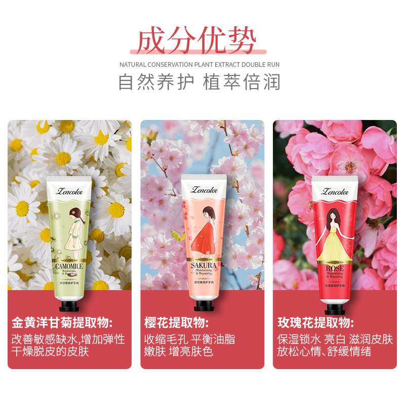 Chamomile Fruit Fragrance Hand Cream Moisturizing Moisturizing Moisturizing Whitening Autumn and Winter Not Greasy Ladies Portable Small Carry-on Ladies