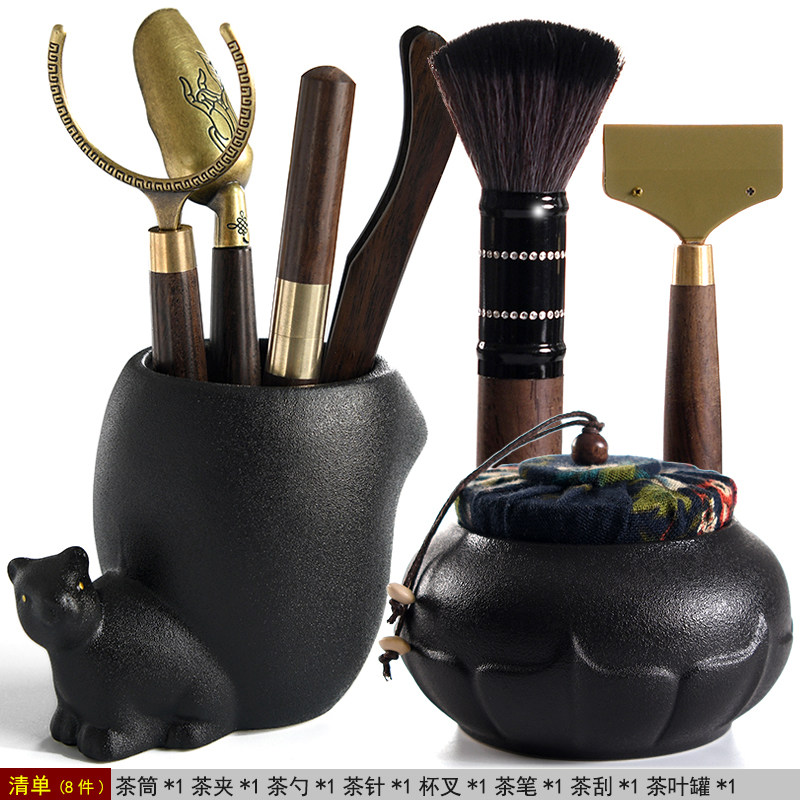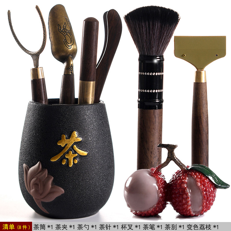 Ceramic tea cylinder six-gentleman containing drum set for home made of bamboo accessories Kung fu tea with pen holder tea spoon tea clip