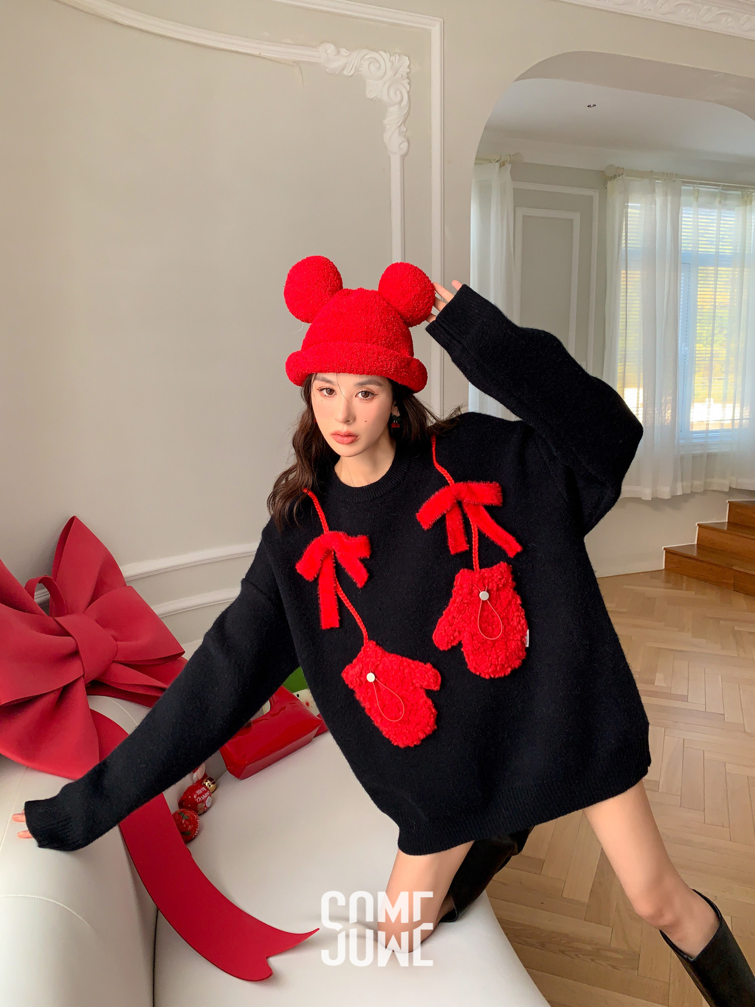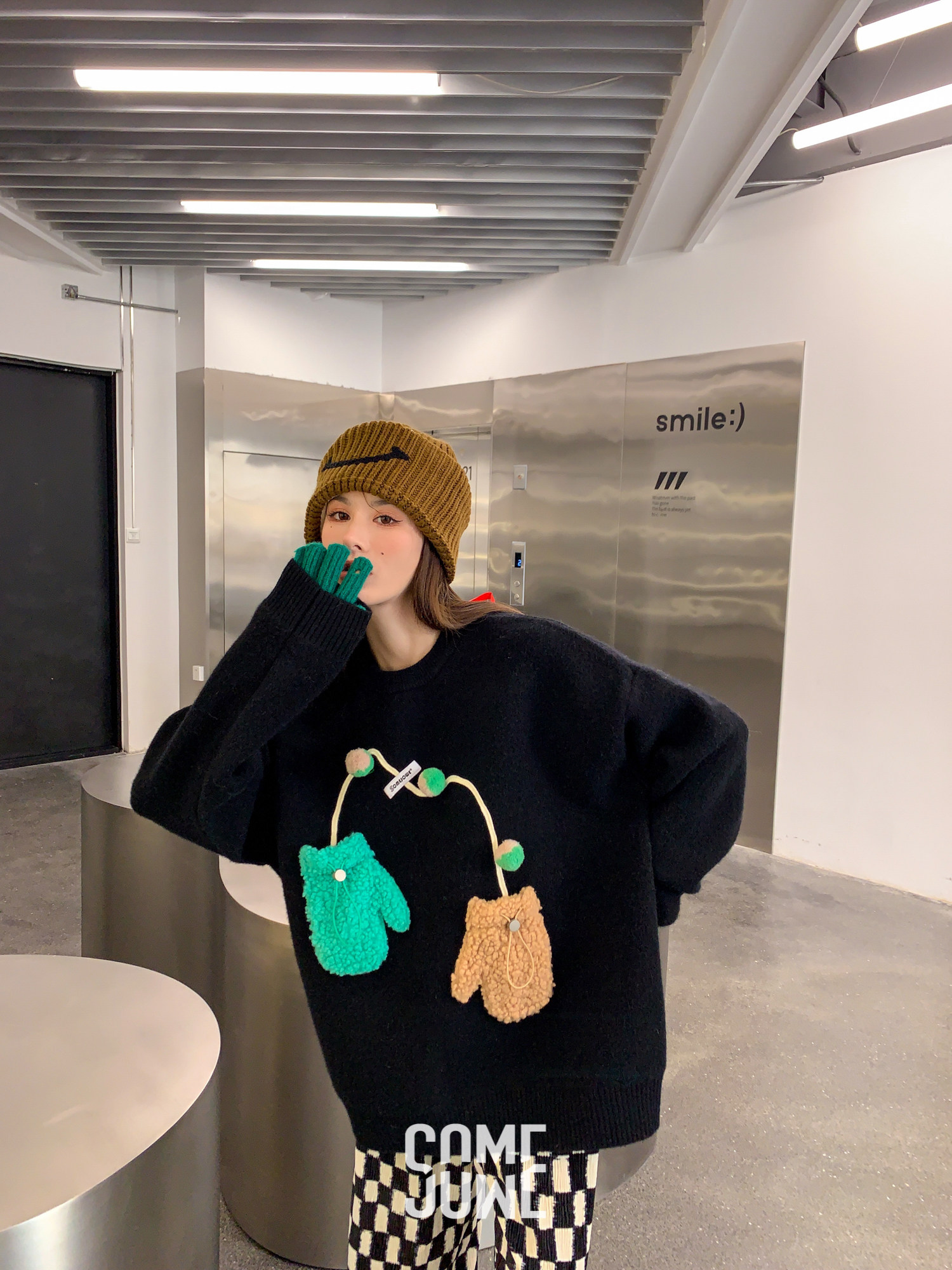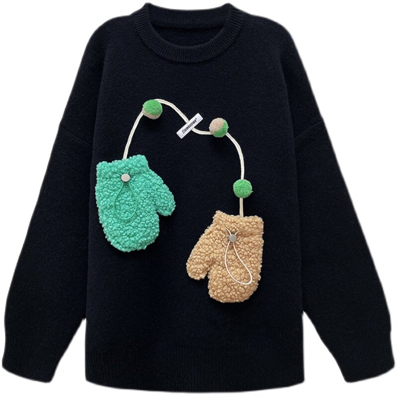 (Zhang Zining same style) SOMESOWE three-dimensional lanyard gloves sweater