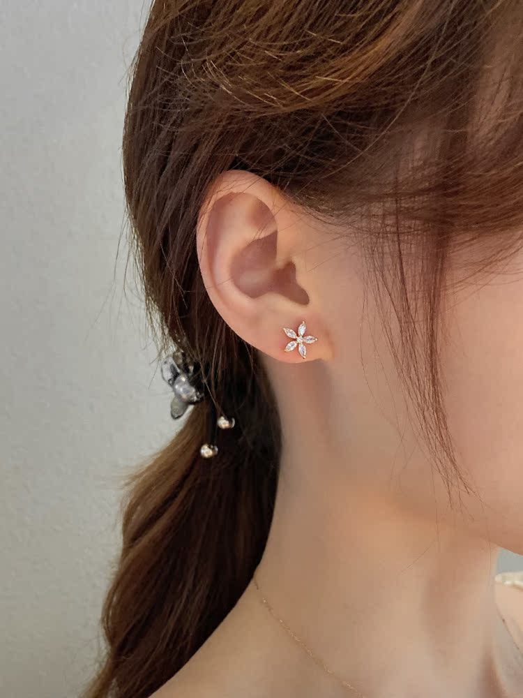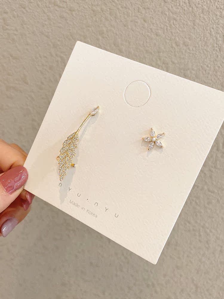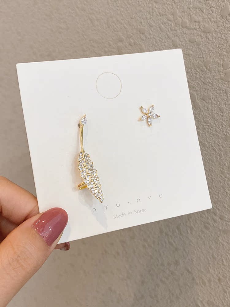 One Leaf Floating Earrings Niche Design Korean High-end Full Diamond Ears Exhaust Quality Super Flash Light Luxury Dongdaemun Earrings