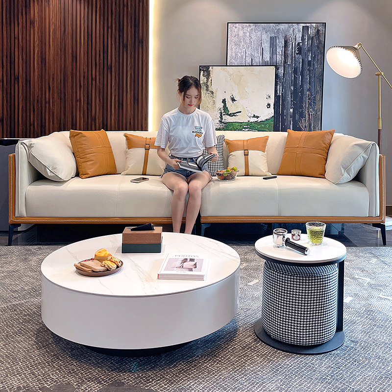 Modern Nordic simple light luxury technology cloth straight sofa combination living room small apartment living room fabric latex sofa