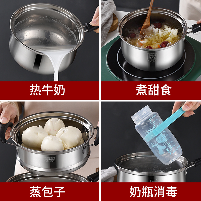 Milk pan 304 stainless steel thickened baby covegan pan baby hot milk pan small number induction cookware gas stove application