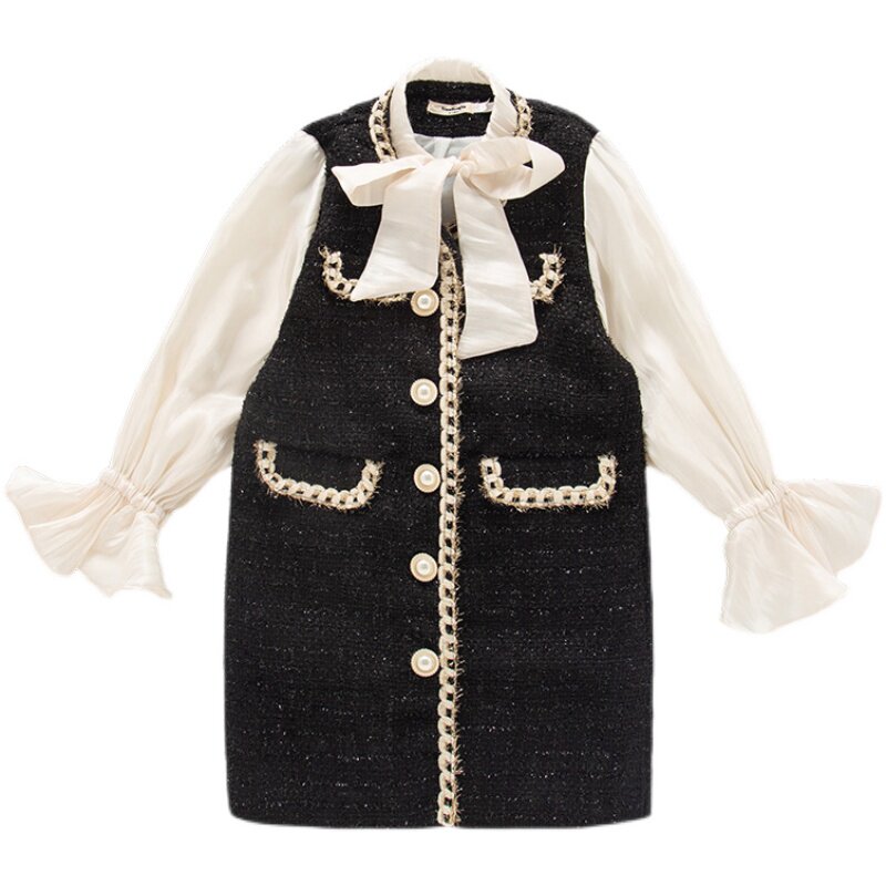 Girls spring and autumn long-sleeved small fragrant wind dress foreign style little girl 2023 new baby children's wool skirt warm