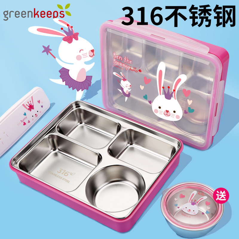 316 Stainless steel lunch box divided lunch plate children's lunch box to keep the box female working class
