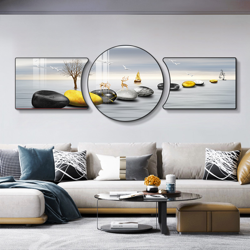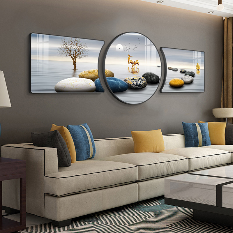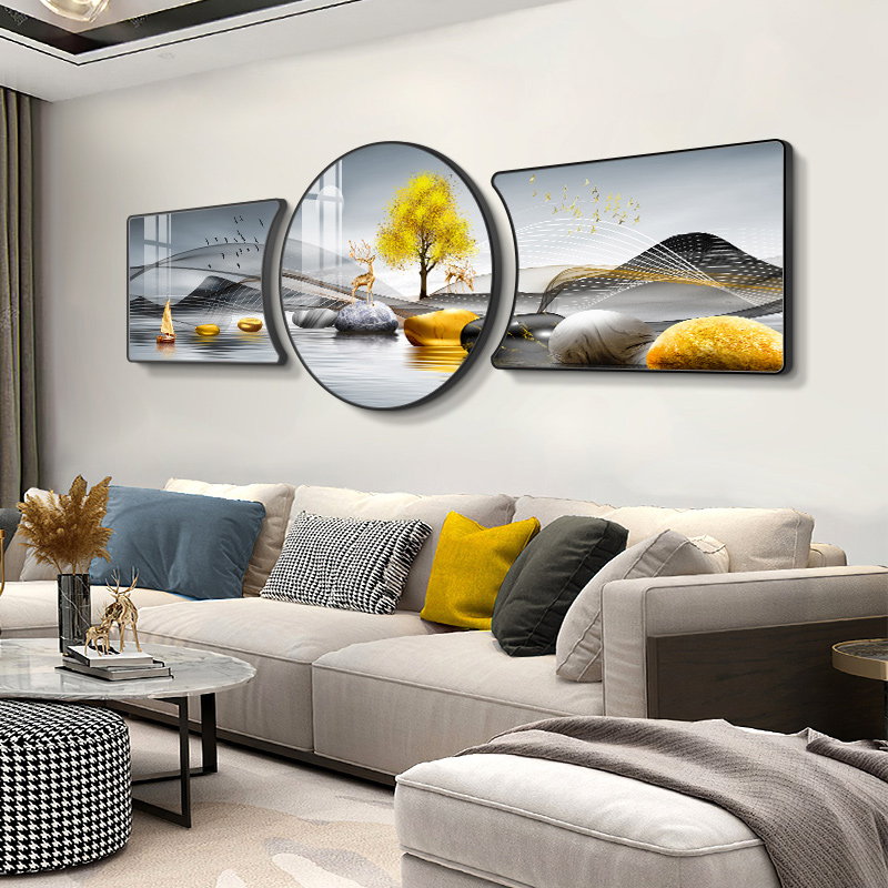 Fulu Shuangzhi Living Room Decorative Painting Nordic Light Luxury Sofa Backwall Hanging Painting High-grade Atmospheric Mural 2021 New