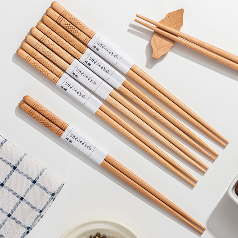 Half Things Life Day Style Chopsticks Pointed Beech Wood Home Wood Chopsticks Non-slip Natural Solid Wood Chopsticks Family Suit Sushi Chopsticks