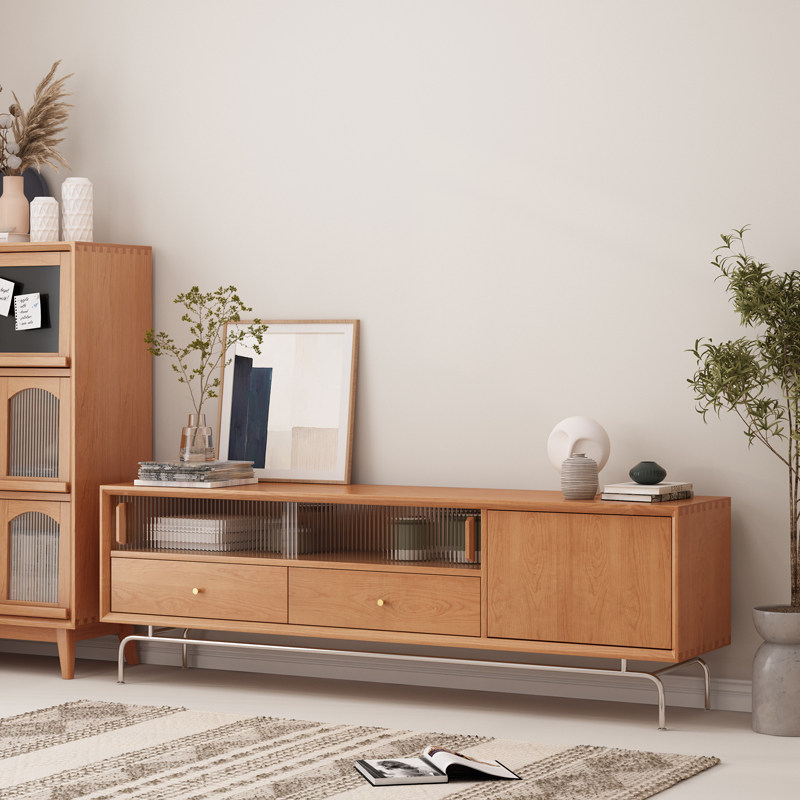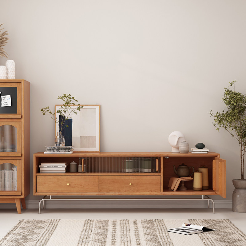 Nordic solid wood Japanese-style TV cabinet small apartment living room audio-visual cabinet multi-functional large-capacity locker home floor cabinet