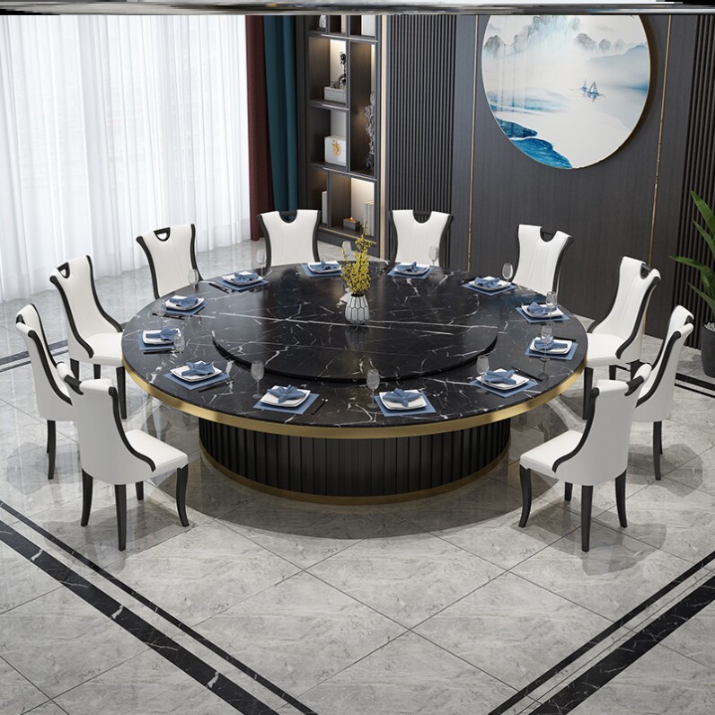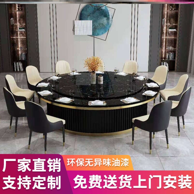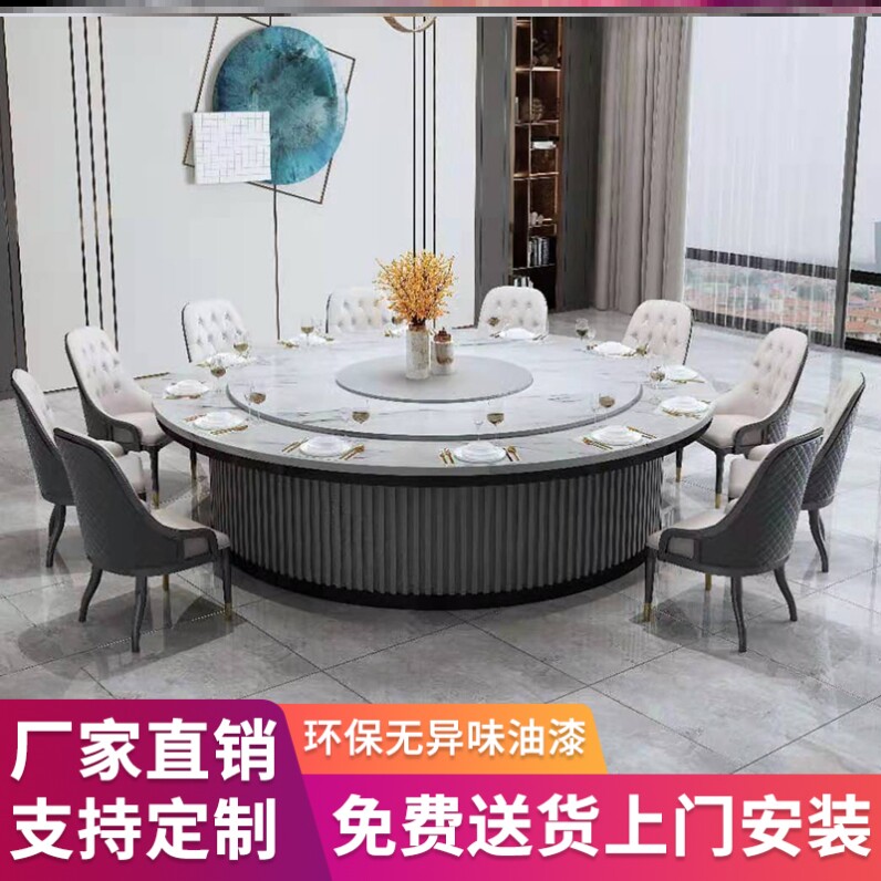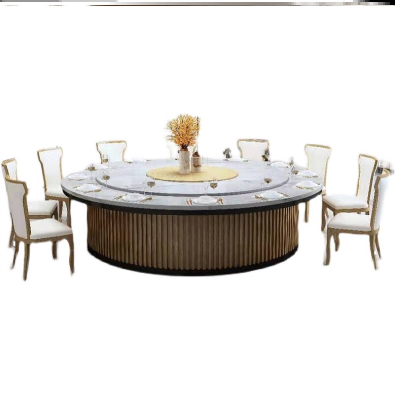 Hotel electric dining table large round table marble automatic turntable 15 people 20 people hotel club large dining table round table and chairs