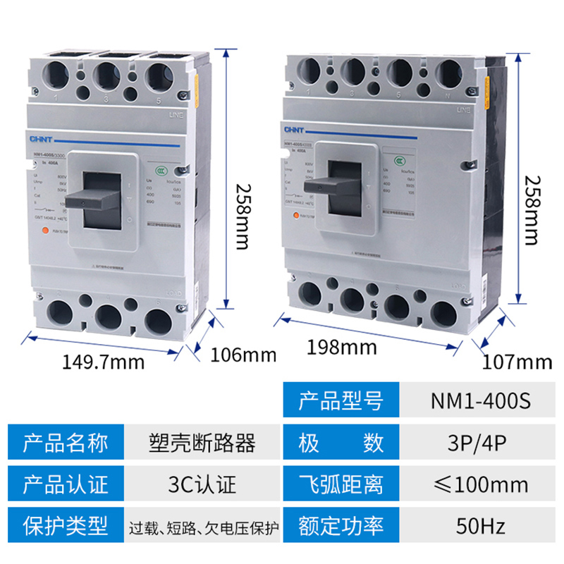 Zhengtai 350A plastic shell type breaker 315a air switch 400A empty open NM1-400S 4300 4P phase 3p