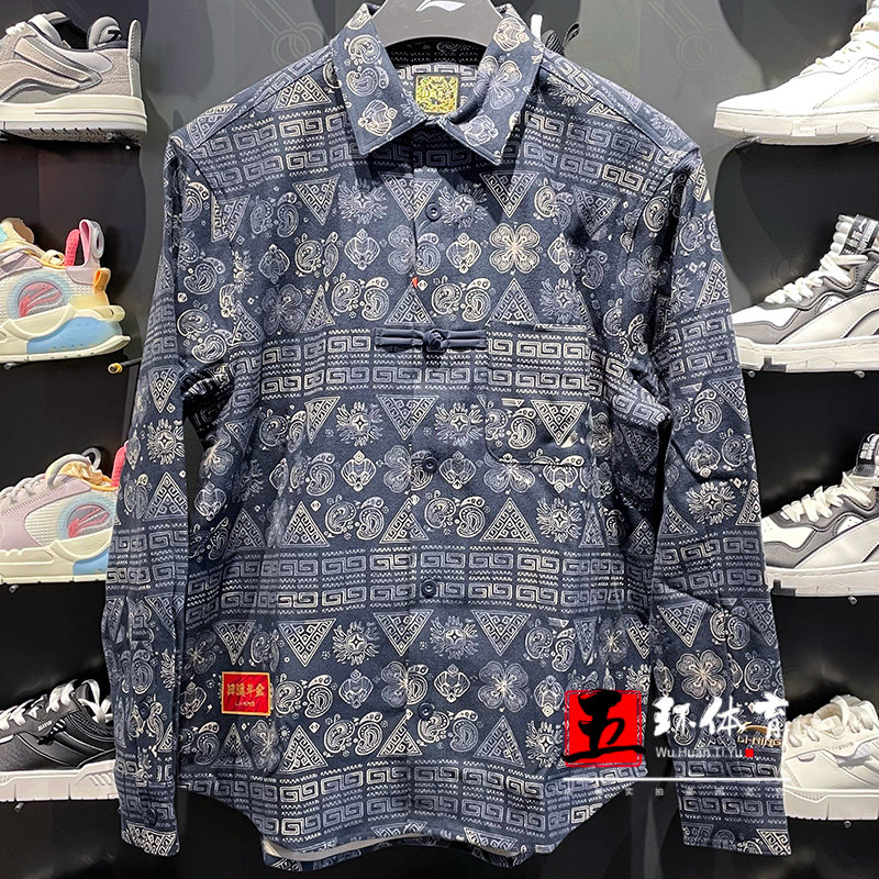 Li Ning Coat 2022 Spring New Day Into The Bucket Gold Man Totem Printed Plus Suede Casual Shirt ASHS007