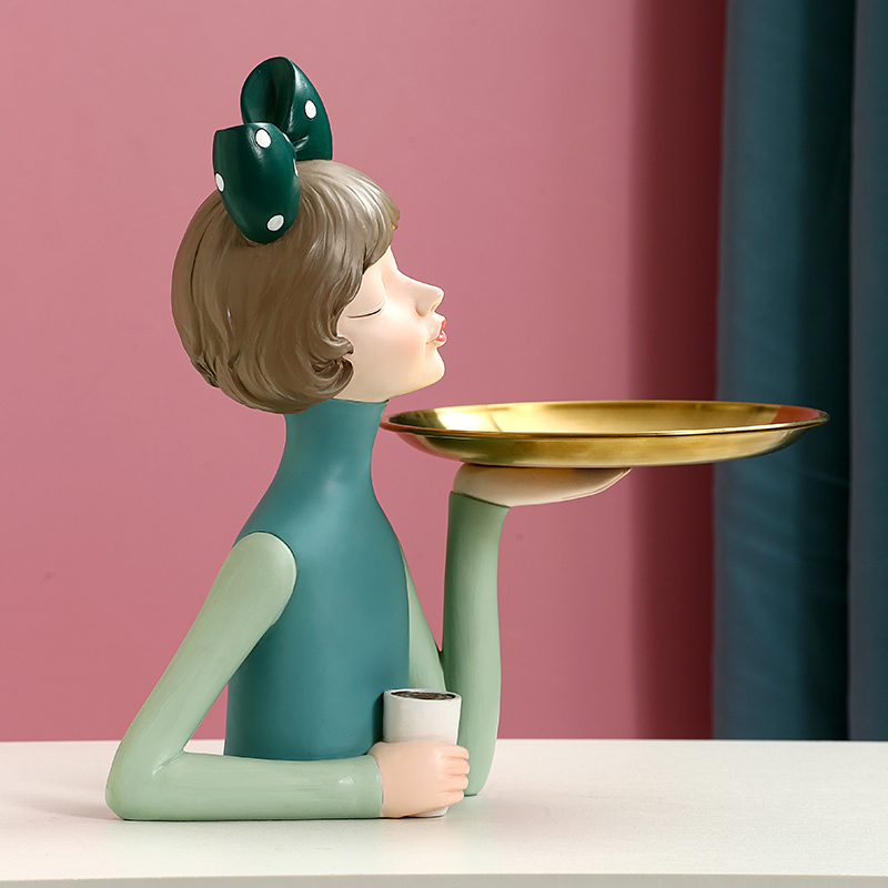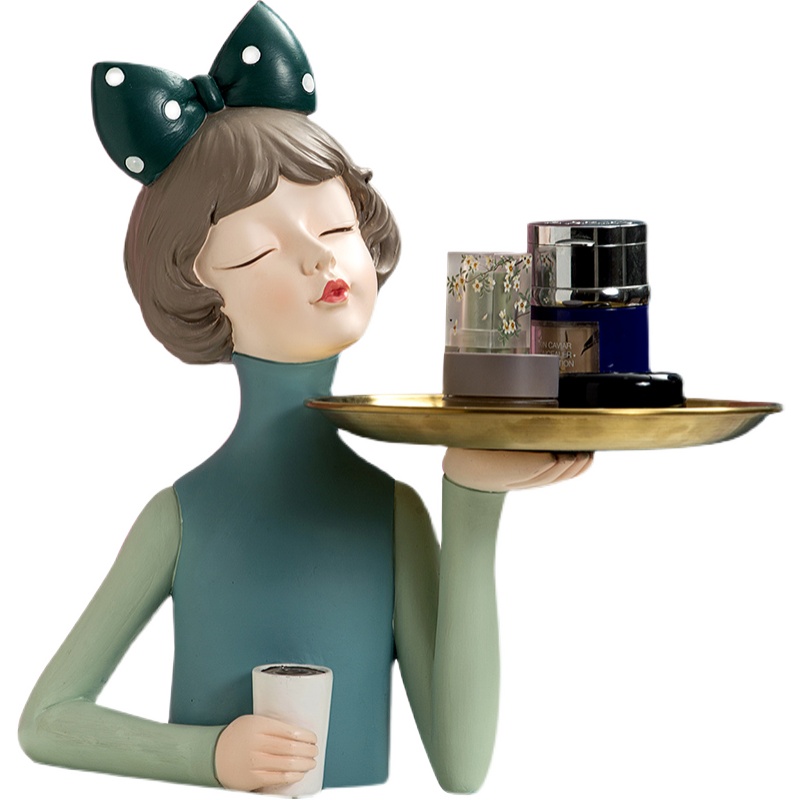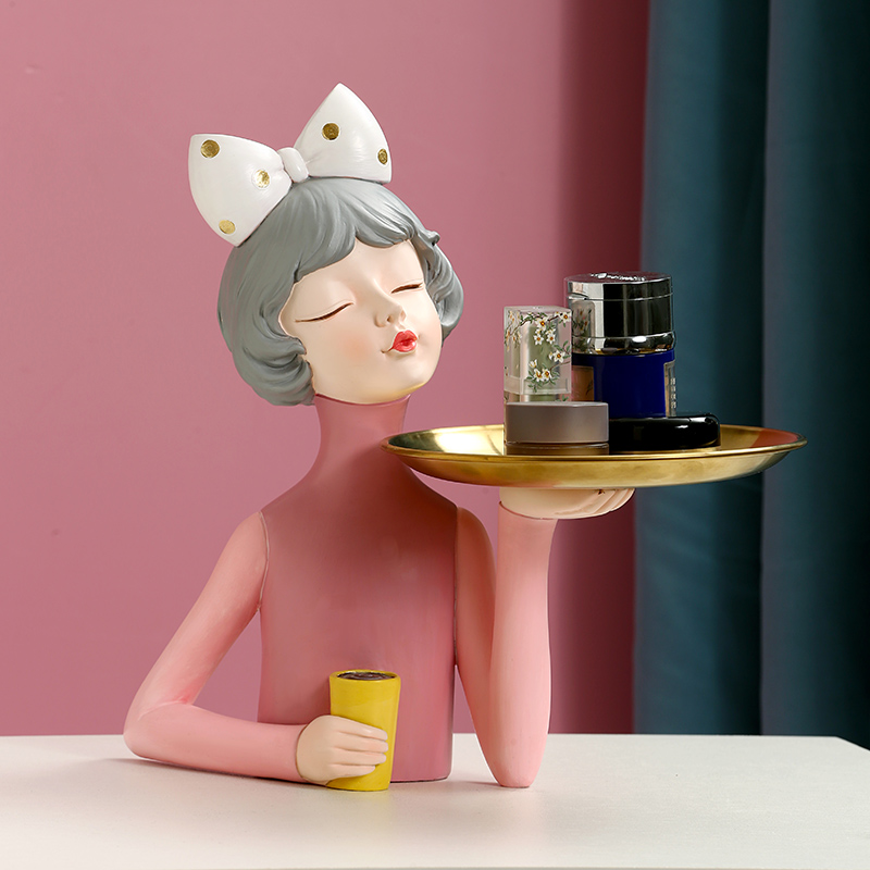 Coffee Girl Tray Storage Ornament Blue Coffee Girl Tray Storage Ornament Pink