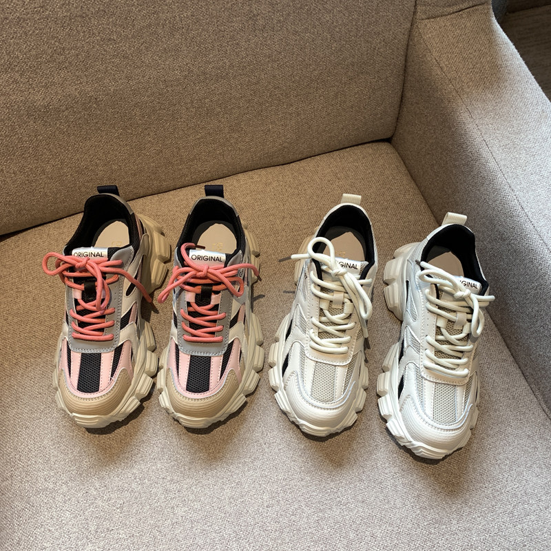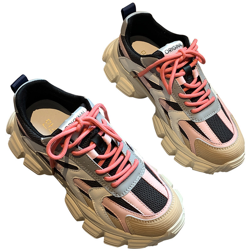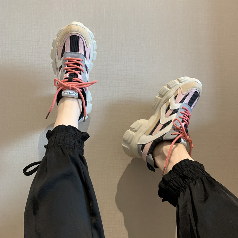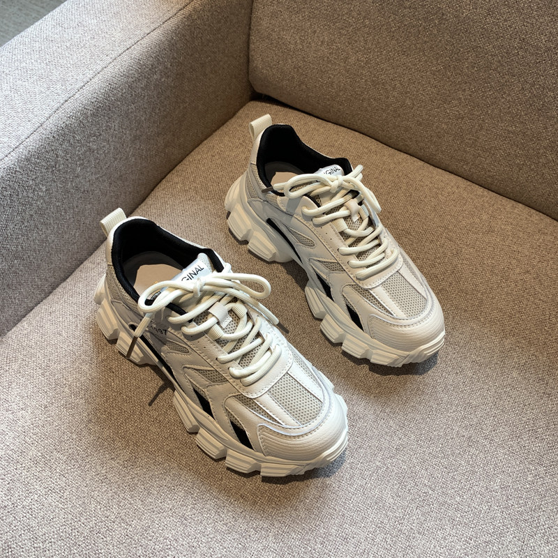 Nicole veve dad shoes women's all-match color matching leather lace-up comfortable thick bottom ins sports casual shoes trend