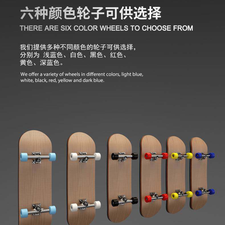 White wheels with bearings White wheels without bearings Black wheels with bearings Black wheels without bearings Light blue wheels with bearings Light blue wheels without bearings Dark blue wheels with bearings Yellow wheels with bearings Yellow wheels without shafts