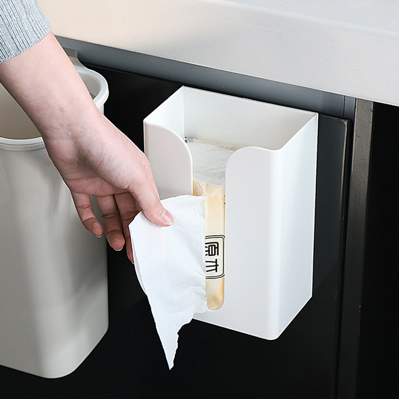 Simple solid color free punch sticky wall tissue box rectangular plastic kitchen powder room garbage bag toilet paper box