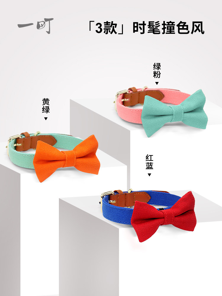 Dog Pet Item Circle Kirky Necktie Teddy Traction Rope Genuine Leather Splicing Neck Ring Butterfly Knots Kitty Ornament Dog Necklace