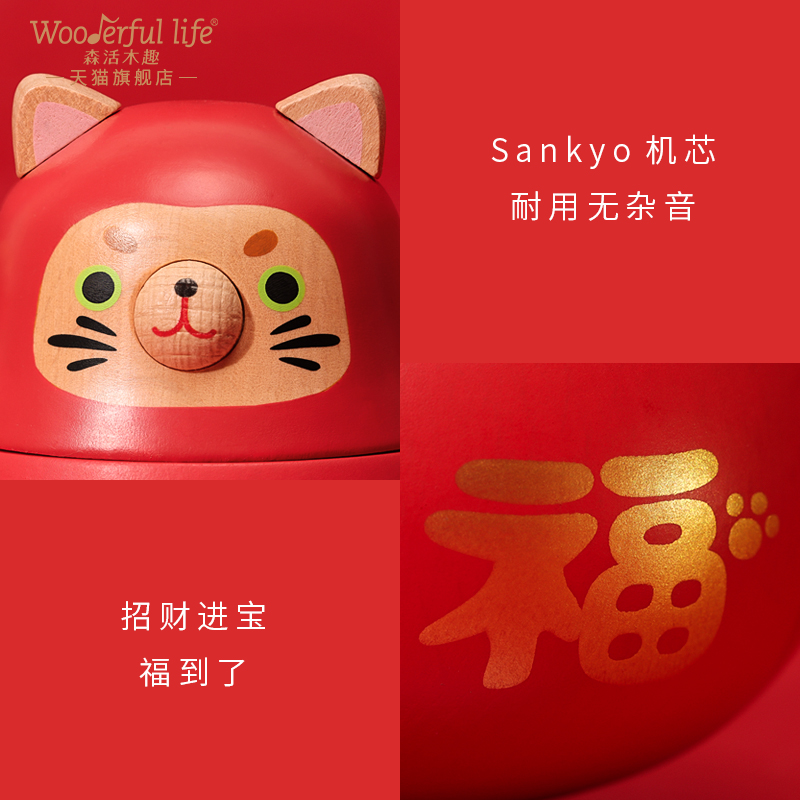 Senhuo Wooden Fun Wooden Tumbler Music Box Ornament Sankyo Rotating Music Box Children's Lucky Birthday Gift