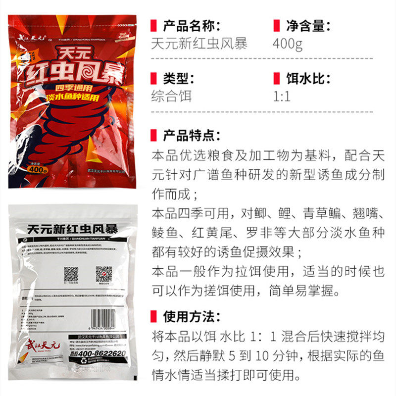 Wuhan Tianyuan New Red Worm Storm 400g Crucian Carp Bream Bream Carp Comprehensive Bait Four Seasons Wild Fishing Bait Bait