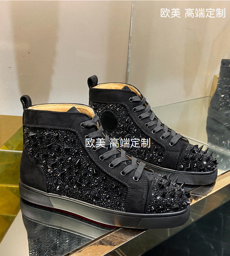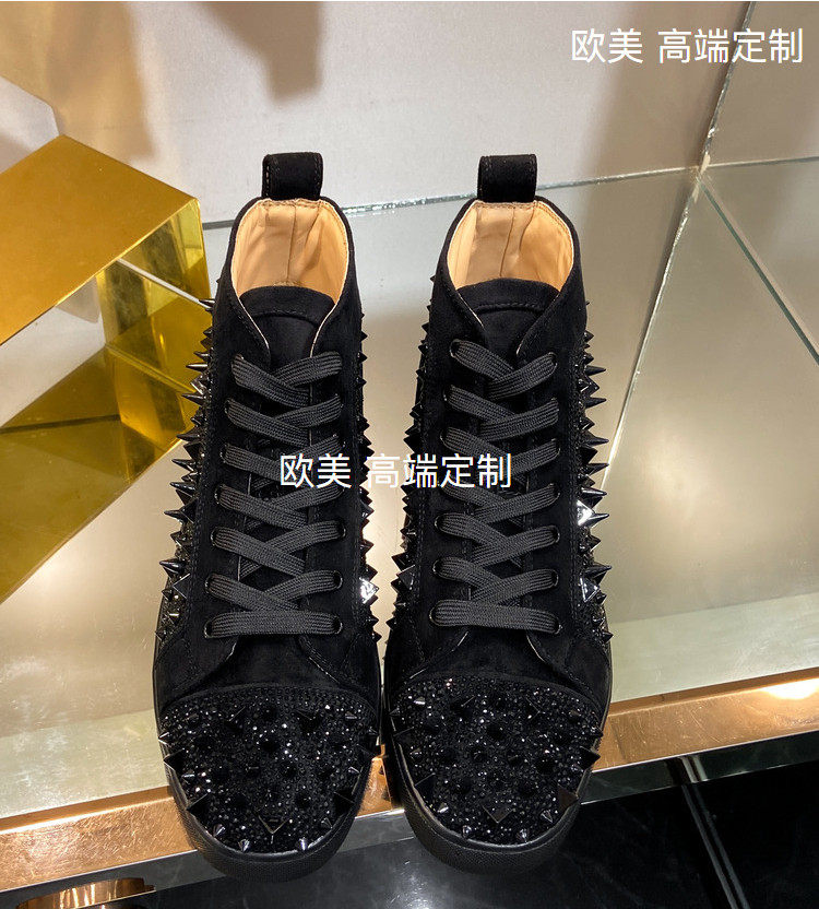 Spring and summer new European goods АCL men's shoes high tube black and white miscellaneous nails red bottom women's rhinestone leather nightclub large size couple shoes
