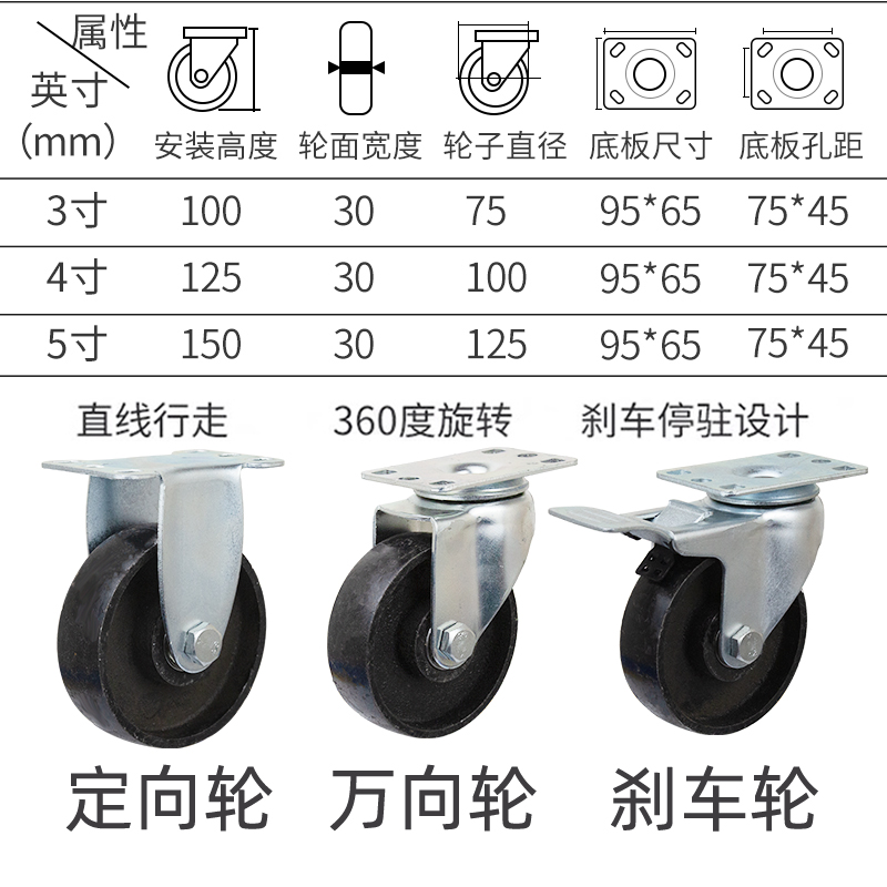 3-inch directional wheel 3-inch universal wheel 3-inch brake wheel 4-inch directional wheel 4-inch universal wheel 4-inch brake wheel 5-inch directional wheel 5-inch universal wheel 5-inch brake wheel 3-inch single wheel 4-inch single wheel 5-inch single wheel