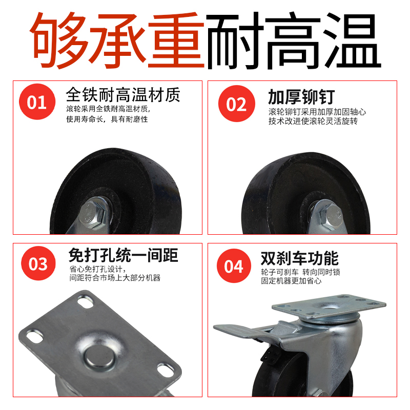High temperature resistant iron wheels with double bearings 3 inch 4 inch 5 inch flatbed cart trolley drag brake cast iron universal wheel caster