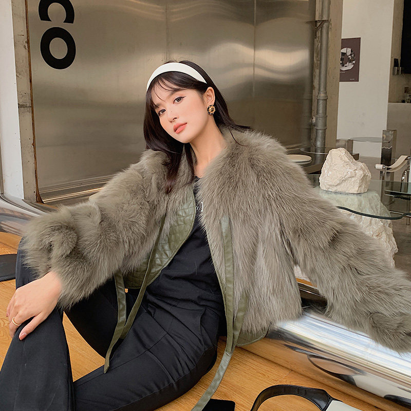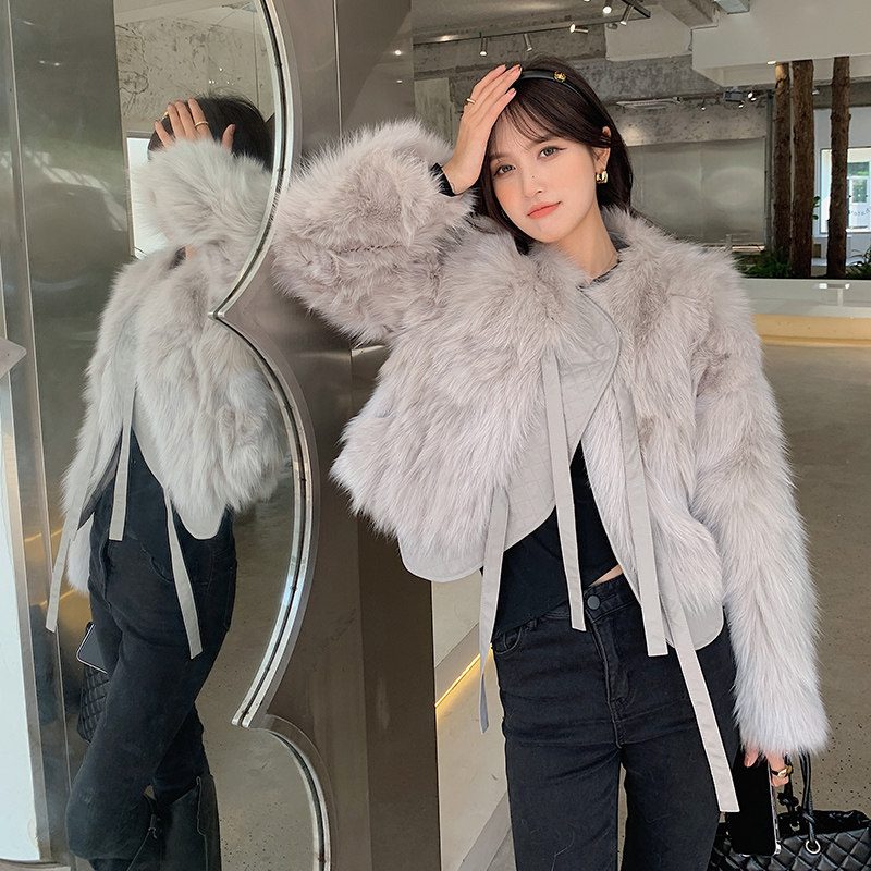 Fox Fur Fur Coat Women's 2022 New Young Short Coat Sheepskin Lace-Up Fur All-in-One Haining