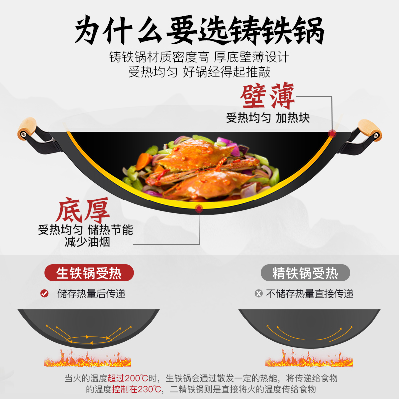 Old fashioned round bottom cast iron frying pan thickened with double ear iron pan Home large pan frying pan not sticking to raw iron gas stove