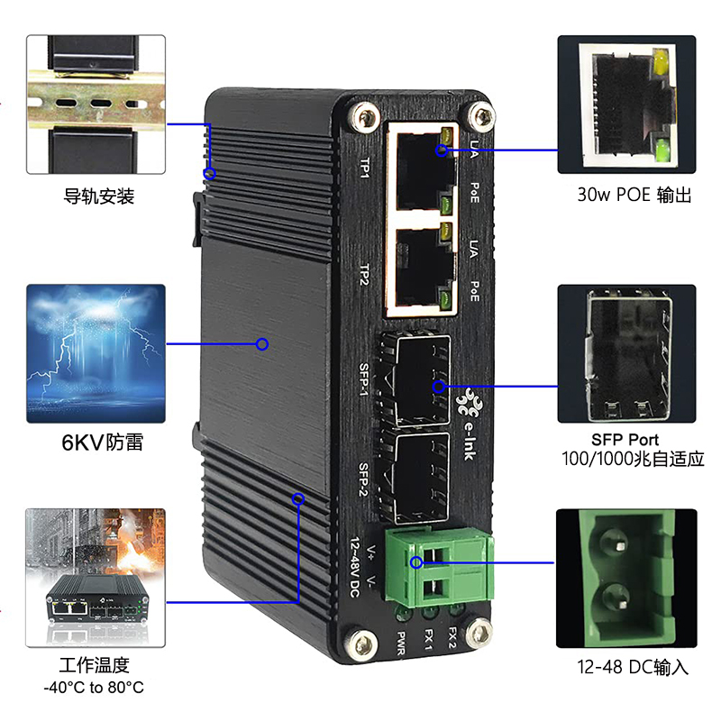 Industrial grade 2 light 2 power (SFP non-management) Industrial grade 2 light 2 power (SFP non-management)POE Industrial grade 1 light 4 power (SFP non-management) Industrial grade 1 light 4 power (SFP non-management)