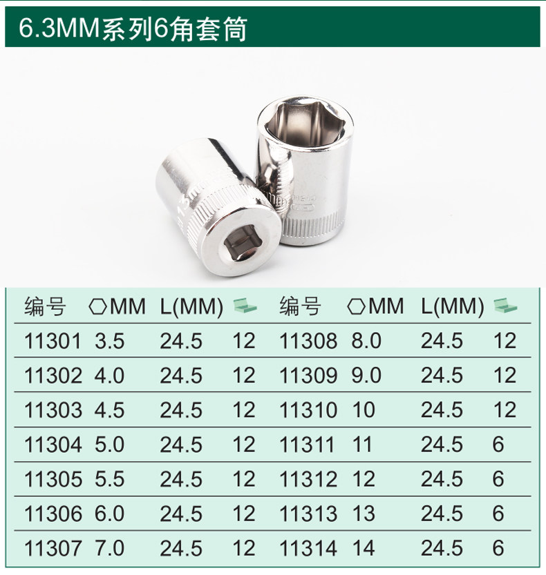 3 5mm (11301) 4mm (11302) 4 5mm (11303) 5mm (11304) 5 5mm (11305) 6mm (