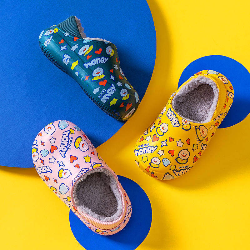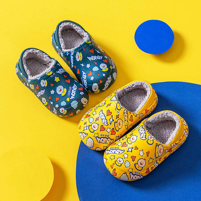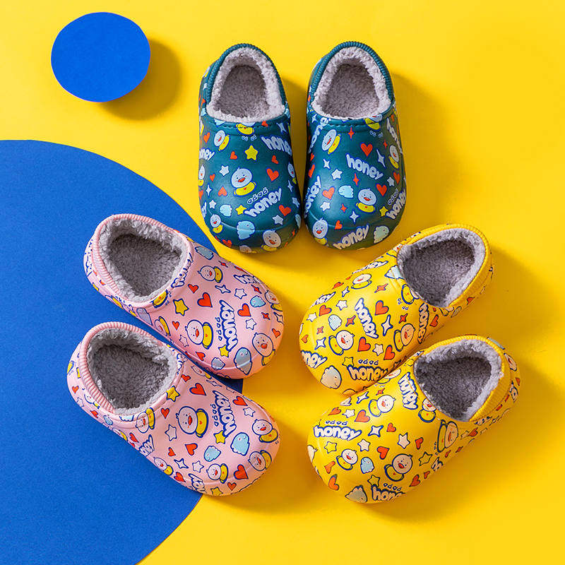 Children's bag cotton slippers winter warm indoor boys and girls baby household waterproof and skid-proof children slippers