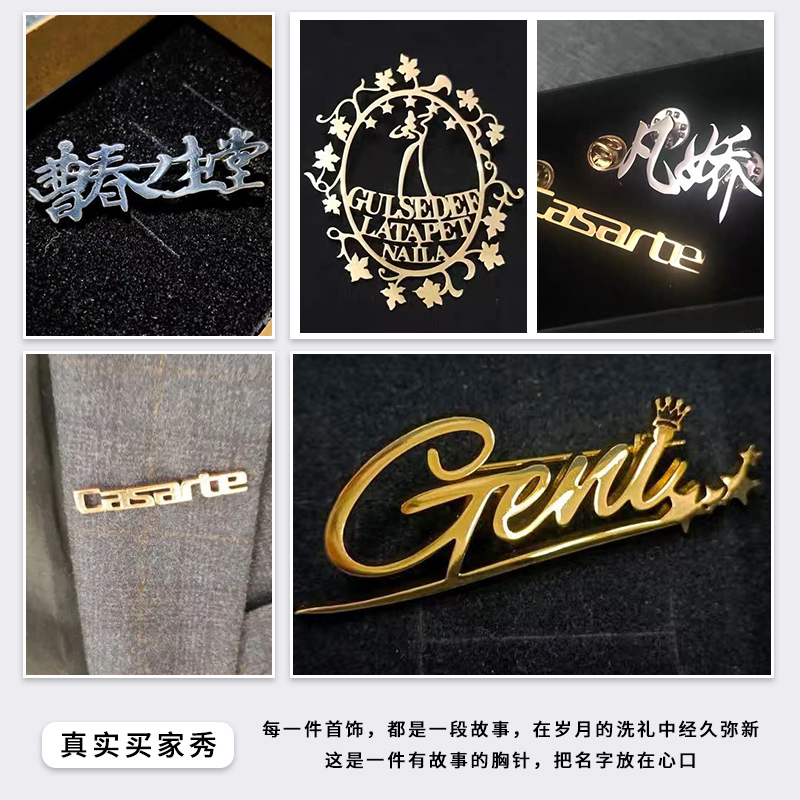 Set made the company logo Breast Needle Metal Badge to make famous Alphabet Chest Needle Custom Titanium Steel Hollowed-out Chest Card Booking