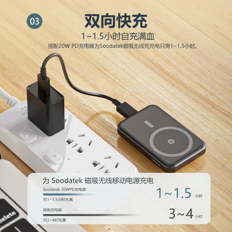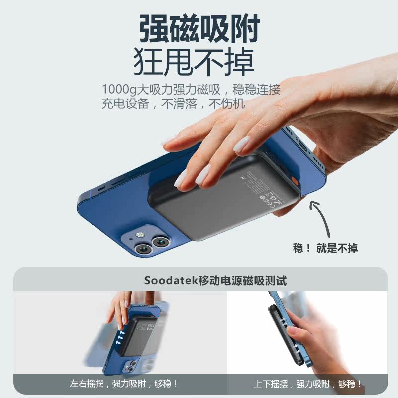 5000mAh magnetic wireless charging (support 20W PD fast charging)